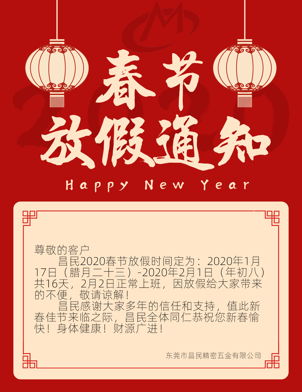 2020春節(jié)放假通知